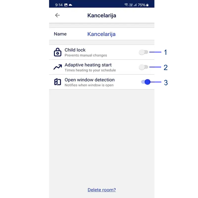 - Detekcija otvorenog prozora, koja sprečava da nepotrebno grejete okolinu kada je potrebno da provetrite Vaš prostor.