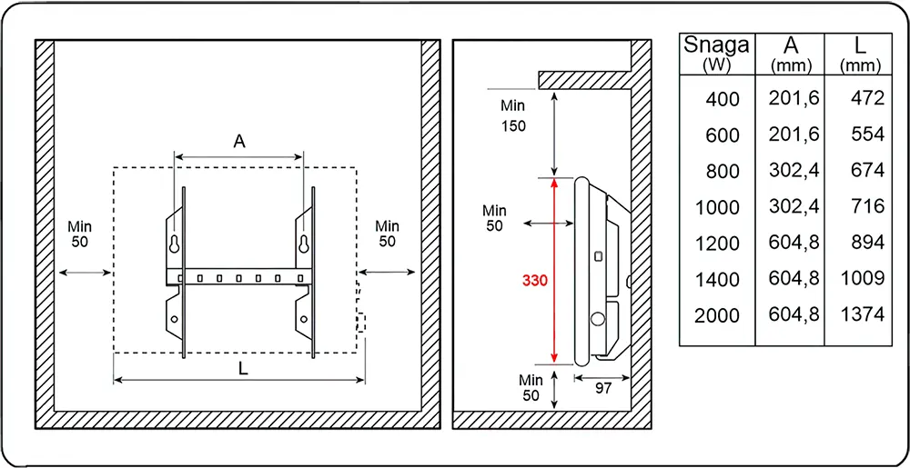 Termostat, prekidač i priključni kabl moraju se nalaziti sa desne strane radijatora!!!
