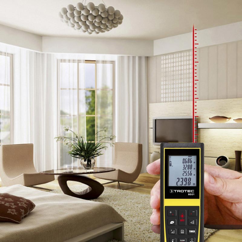 BD21 obezbeđuje nepogregrešivu pouzdanu informaciju svaki put, stoga omogućava da izračunate stvarne potrebe za tačnu količinu materijala, kao što je npr. farba, parket, pločice, izolacija koja vam je potrebna za određenu površinu.