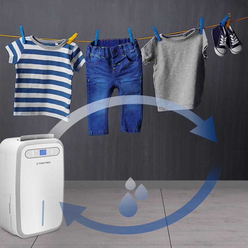 Sušenje veša može se izvesti i sa odvlaživaćima bez dodatne funkcije sušenja veša. Tada se mora postaviti ciljna vrednost vlažnosti vazduha u skladu sa željenom zaostalom vlagom: