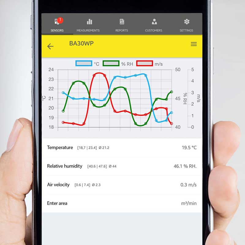 U kombinaciji sa besplatnom aplikacijom MultiMeasure Mobile, ovaj koncept mernog uređaja nudi mnoge prednosti. Aplikacija na mobilnom telefonu automatski prepoznaje sve senzore koji su u dometu bežične tehnologije Bluetooth i veoma se se brzo i jednostavno mogu povezati sa aplikacijom na mobilnom telefonu.