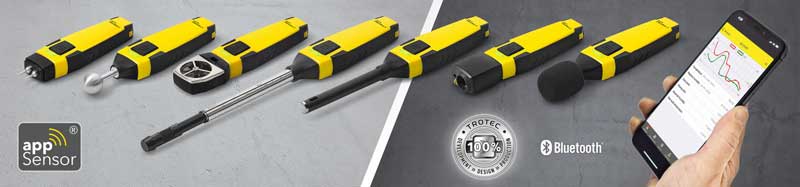 Od anemometra do termohigrometra, uređaja za merenje vlage, pirometra ili uređaja za merenje nivoa buke - Trotecov asortiman appSensors sadrži različite merne uređaje za različite zadatke.