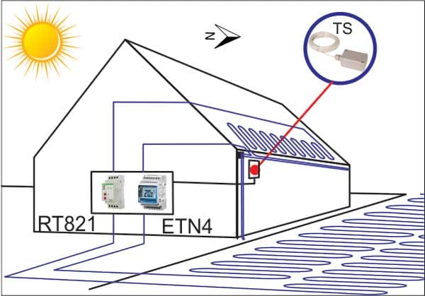Važno! Sonda termostata uvek se postavlja na njhladnijem mestu na fasadi objekta. Sonda treba da bude na servernoj strani objekta u hladovini. Treba voditi racuna da objekat ne greje temperaturnu sondu. Sonda se nesme instalirati iznad ulaznih vrata ili prozora objekta kao ni blizu dimnjaka ili drugih instalacija koje greju objekat.